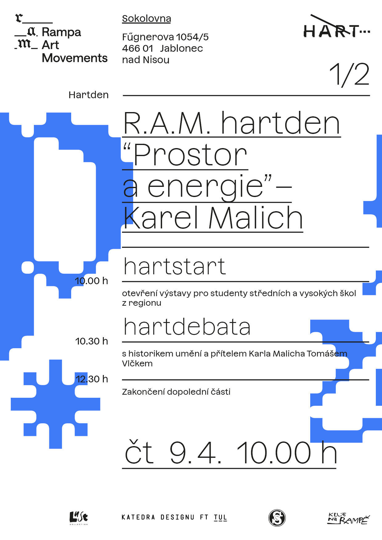 Program začíná v dopoledních hodinách hartdebatou s historikem umění, kurátorem výstavy a přítelem Karla Malicha, Tomášem Vlčkem. Diskuze proběhne za účasti studentů uměleckých středních škol a nabídne hlubší vhled do Malichovy tvorby i kontextu jeho díla.
